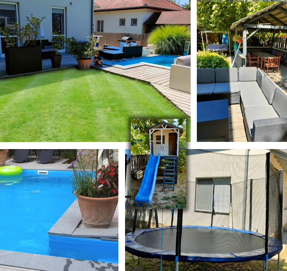 Nagy hangsúlyt fektettünk a kert kialakítására arra törekedtünk, hogy a nyaralás minden pillanatát a szabadba tölthessék. Házunkban 4 apartman található 3db. 4 fős 1db 6 fős. Apartmanjaink komfortosan, otthonosan vannak kialakítva. A parkolás korlátozott számban megoldott a ház előtt az utcán.